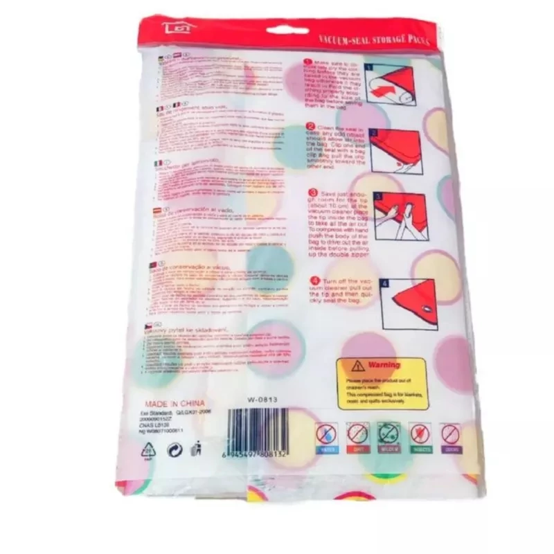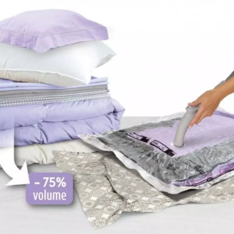 وکیوم پک کیسه مخصوصی است که شما میتوانید با استفاده از آن حجم البسه خود را تا 75 درصد کاهش دهید. یکی از کاربردهای استفاده از کیسه کم حجم کننده لباس یا همان وکیوم بگ جلوگیری از نفوذ حشرات، بید زدگی، رطوبت، بوگرفتگی، گرد و خاک و نفوذ قارچ ها و باکتری ها به داخل البسه است. یا تصور کنید که قصد رفتن به سفر را دارید آیا دوست ندارید حجم لباس هایتان تا یک چهارم کاهش پیدا کند تا راحت تر در چمدان یا ساک شما جای بگیرد؟ کیسه کم حجم کننده لباس (وکیوم بگ) این کار را برای شما انجام می دهد. فقط کافیست از قسمت کناری کیسه پوشاک خود را وارد کیسه کرده و سپس بعد از بستن زیپ مخصوص با جاروبرقی اقدام به تخلیه هوای داخل کیسه نمایید . دقت کنید برای دریافت نتیجه مطلوب از تا کردن زیاد البسه داخل کیسه خودداری نمایید تا هوا بتواند در هنگام مکش به درستی خارج شود همچنین از فشردن زیاد البسه داخل یک کیسه خودداری نمایید. در هنگام تخلیه هوا حتما ابتدا جاروبرقی را خاموش کرده و سپس خرطومی جاروبرقی را از دهانه کیسه جدا کنید تا آسیبی به درب خروجی هوا وارد نشود.