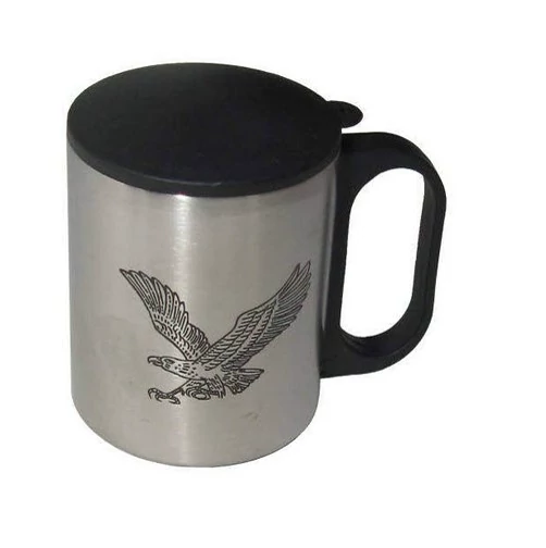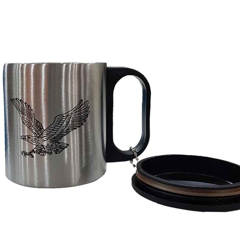 لیوان درب دار استیل سفری دارای آویز اتصال درب به دسته و دوجداره و عایق حرارتی