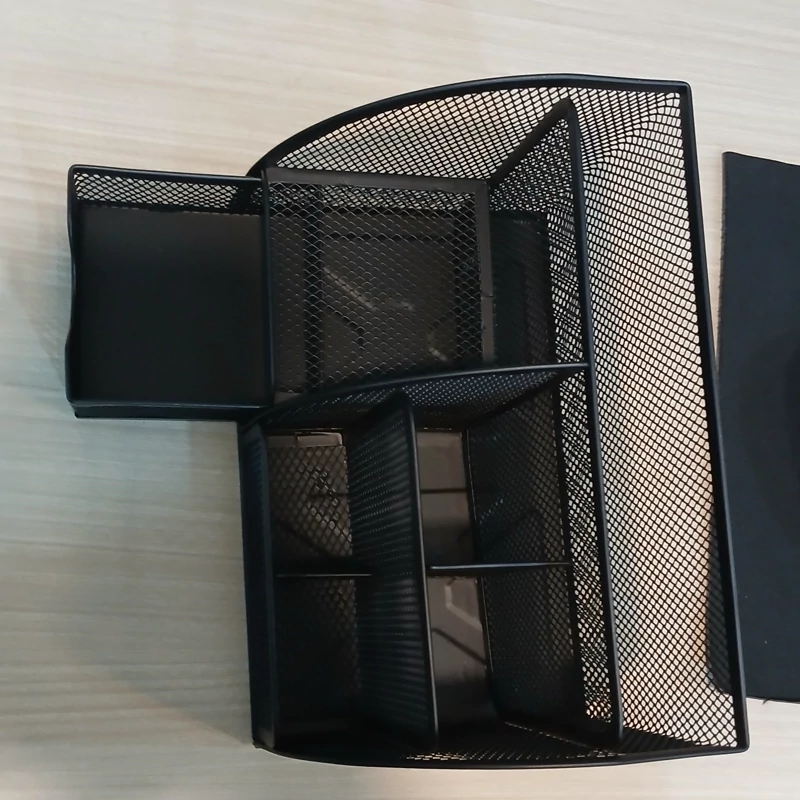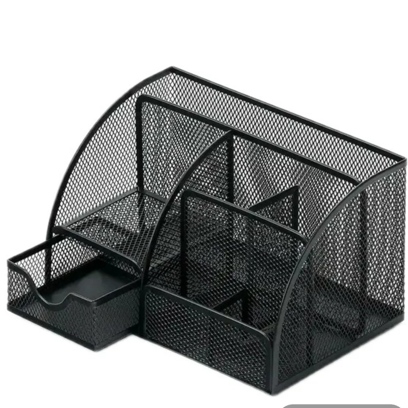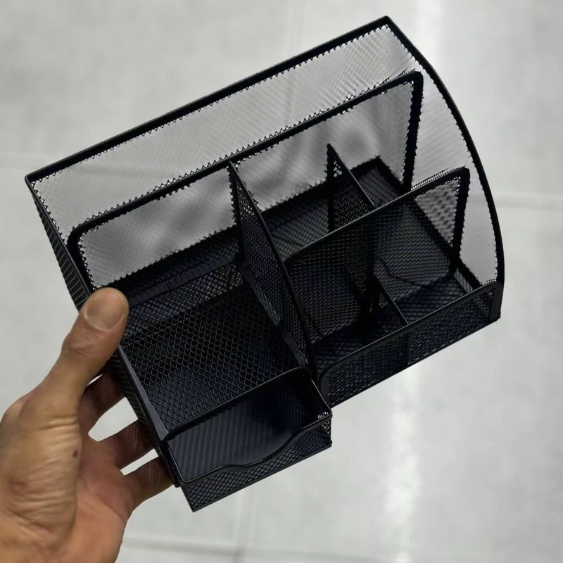 طرح:این پایه ترکیبی از دوام و طراحی مدرن است و یک سازمان دهنده براق برای قلم های شما ارائه می دهد. ساختار مش فلزی محکم آن دید و دسترسی سریع را تضمین می کند.