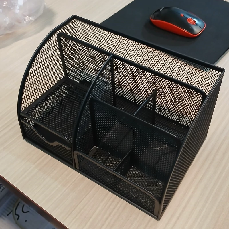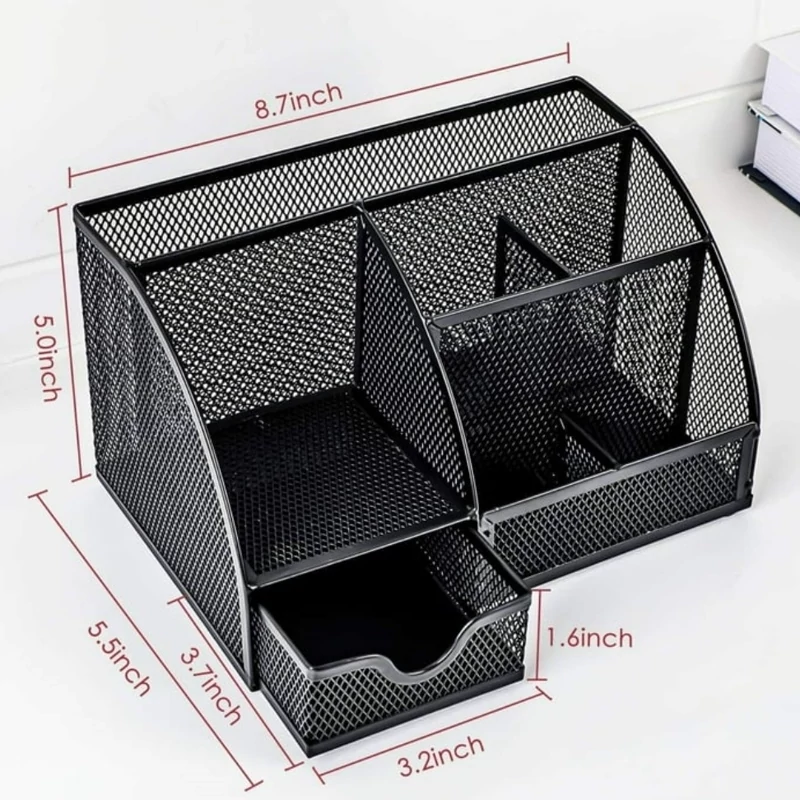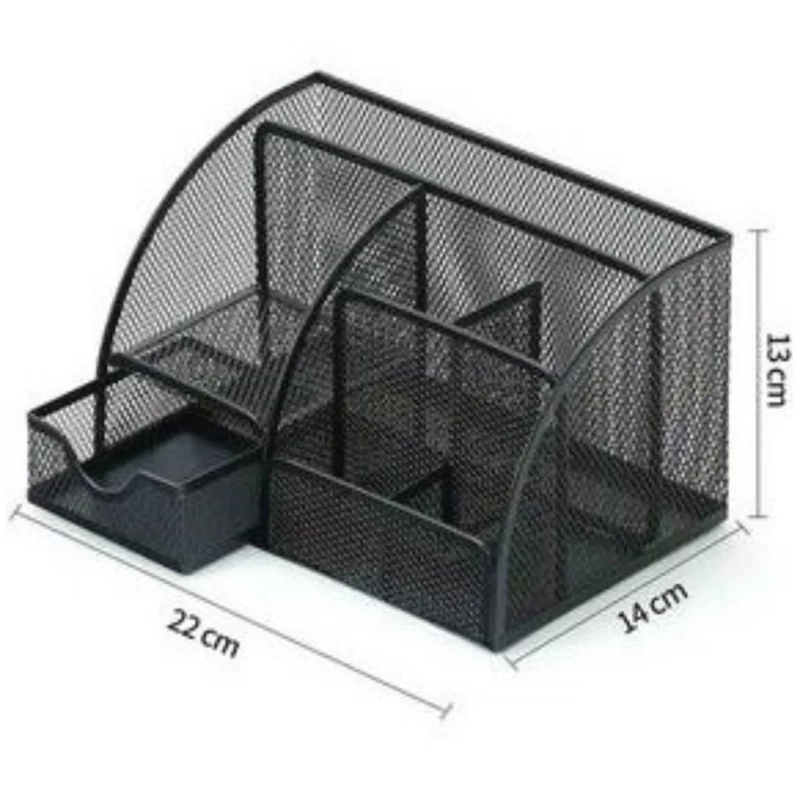 استند رو میزی اداری 6محفظه،صرفه جویی در فضا،نگهداری آسان قلم ها، قیچی ها، کتاب ها،گیره های کاغذ و غیره در یک مکان،همچنین در سازماندهی لوازم آرایشی و وسایل کوچک خانگی نیز میتواند موثر باشد.مواد شیک و مستحکم،دارای 1کشو ،متریال با کیفیت از فلز مشبک باکیفیت ،بادوام، جمع و جور و ظاهری هوشمندانه ،سازماندهی میز اداری چند منظوره و فضای ذخیره سازی با 6 محفظه با ابعاد کاملاً فکر شده که وسایل مورد نیاز شما را در دسترس نگه می دارد و در عین حال نظم خاصی به میز کار شما میدهد