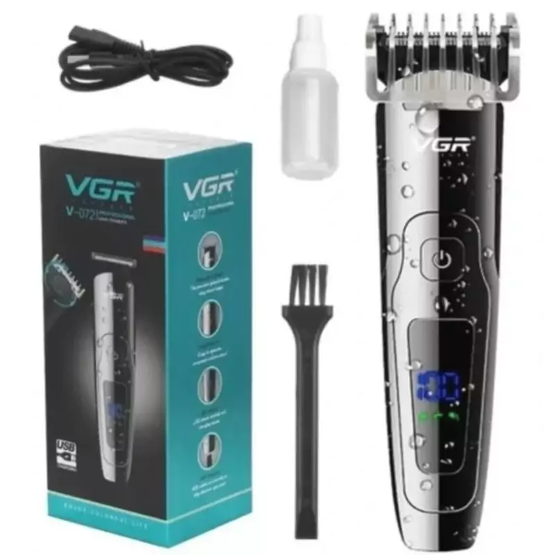 ماشین اصلاح وی جی ار مدل 072 قابلیت اصلاح مو سر- صورت و بدن را دارد این دستگاه کاملا ضدآب میباشد و دارای صفحه نمایشگر دیجیتال و قفل کودک است . شانه این دستگاه متحرک و از سایز 1 تا 10 میلی متر قابل استفاده میباشد و این دستگاه با 3 ساعت شارژ کردن 120 دقیقه کارکرد دارد . ماشین اصلاح وی جی ار مدل V-072 از تیغه هایی به جنس استیل ضد زنگ ساخته شده است که در مقابل رطوبت مقاومت است. جنس بدنه این محصول پلاستیک فشرده است که باعث افزایش عمر این دستگاه شده است همچنین منبع تغذیه آن باتری لیتیومی 700 میلی آمپری است. این دستگاه قابلیت شارژ دارد و طی 1.5 ساعت به طور کامل شارژ می شود .