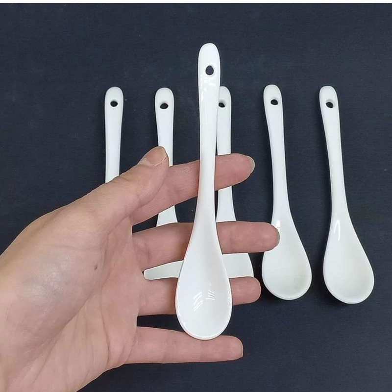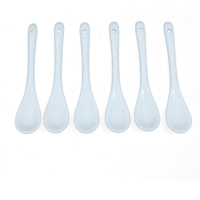 قاشق سرامیکی تک رنگ سفید به صورت 6عددی مخصوص ادویه چای و قهوه و مربا خوری
