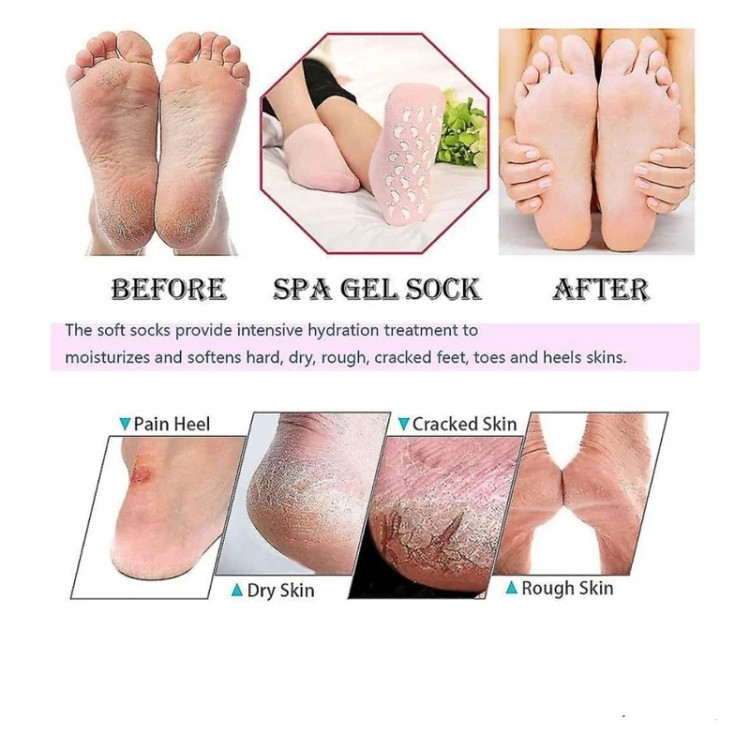 ژل استفاده شده در قسمت داخلی این جوراب، رطوبت لازم را پرای پا فراهم آورده و موجب شادابی و نرمی پوست پای افراد می شود. همچنین این محصول به جذب کامل محصولات و داروهای مراقبت از پوست کمک کرده و موجب بهبود ترک پا می شود.