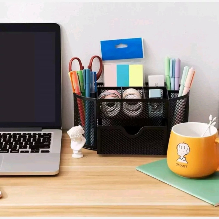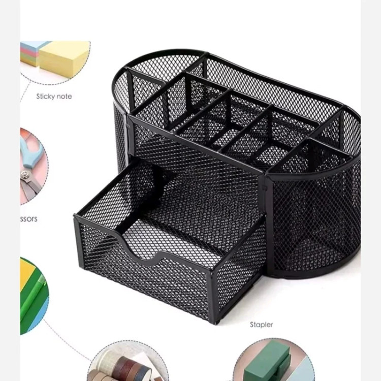 استند رو میزی اداری 9محفظه،صرفه جویی در فضا،نگهداری آسان قلم ها، قیچی ها، کتاب ها،گیره های کاغذ و غیره در یک مکان،همچنین در سازماندهی لوازم آرایشی و وسایل کوچک خانگی نیز میتواند موثر باشد.مواد شیک و مستحکم،دارای 1کشو ،متریال با کیفیت از فلز مشبک باکیفیت ،بادوام، جمع و جور و ظاهری هوشمندانه ،سازماندهی میز اداری چند منظوره و فضای ذخیره سازی با 9محفظه با ابعاد کاملاً فکر شده که وسایل مورد نیاز شما را در دسترس نگه می دارد و در عین حال نظم خاصی به میز کار شما میدهد