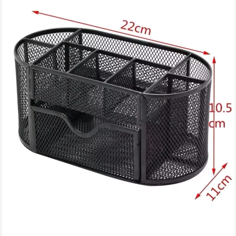 استند رو میزی اداری 9محفظه،صرفه جویی در فضا،نگهداری آسان قلم ها، قیچی ها، کتاب ها،گیره های کاغذ و غیره در یک مکان،همچنین در سازماندهی لوازم آرایشی و وسایل کوچک خانگی نیز میتواند موثر باشد.مواد شیک و مستحکم،دارای 1کشو ،متریال با کیفیت از فلز مشبک باکیفیت ،بادوام، جمع و جور و ظاهری هوشمندانه ،سازماندهی میز اداری چند منظوره و فضای ذخیره سازی با 9محفظه با ابعاد کاملاً فکر شده که وسایل مورد نیاز شما را در دسترس نگه می دارد و در عین حال نظم خاصی به میز کار شما میدهد