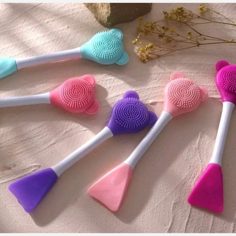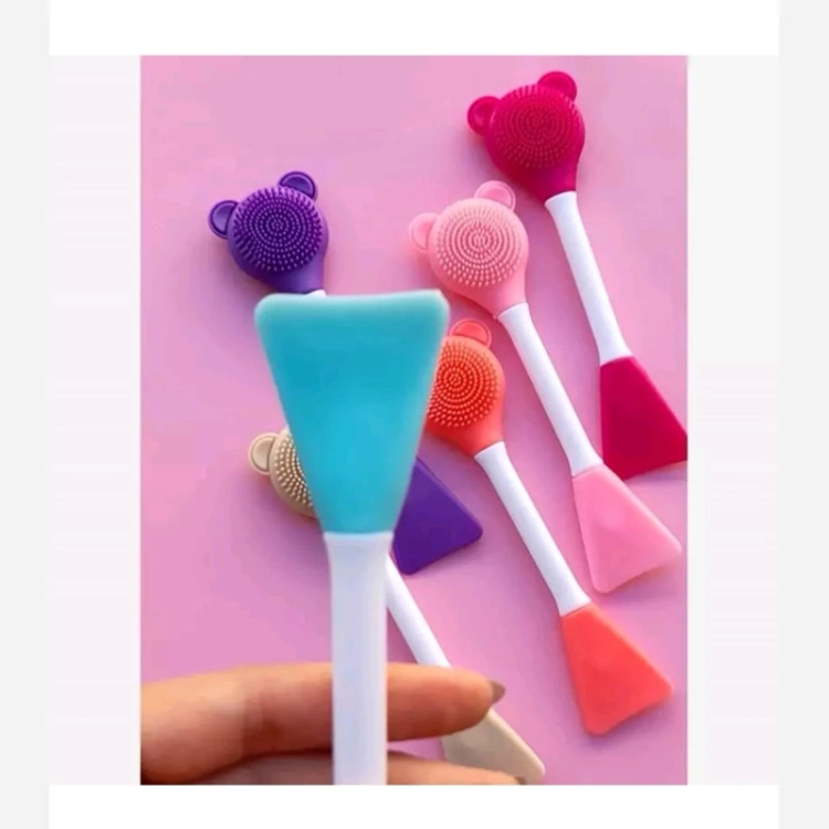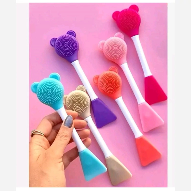 براش ماسک سیلیکونی چند کاره دو سر فیس براش خرسی قلم ماسک صورت مدل خرسی