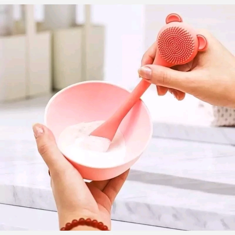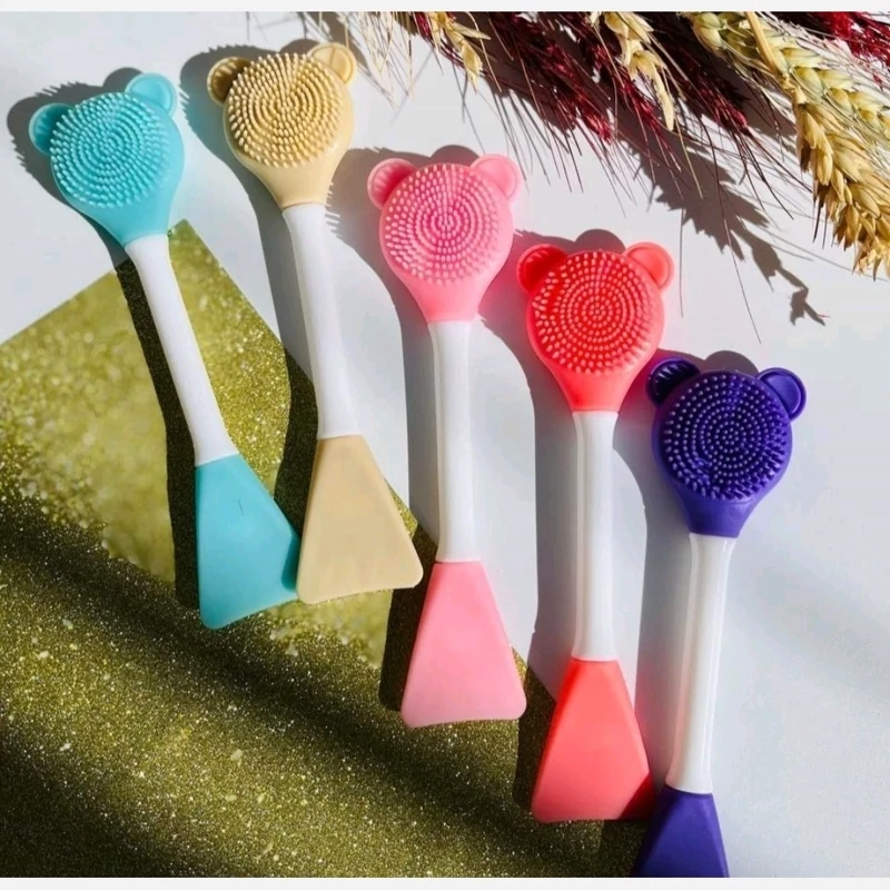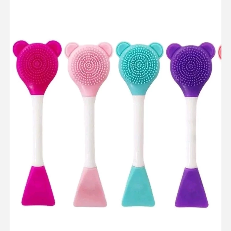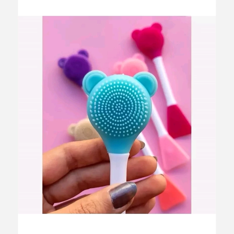 براش ماسک سیلیکونی چند کاره دو سر فیس براش خرسی قلم ماسک صورت مدل خرسی