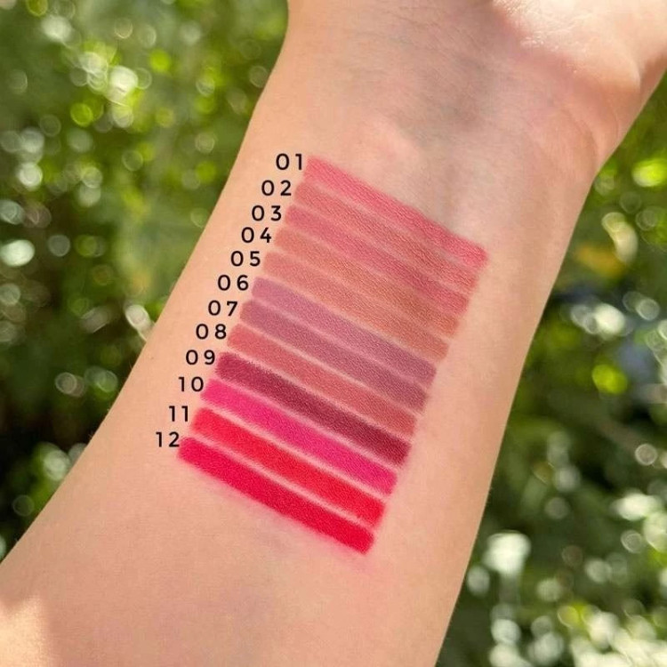 فرمول این خط لبها، کرم-مات و روی لب مینشیند و بدون ترک یا خشکی، حالت طبیعی و تمیز به خط لب میدهد.