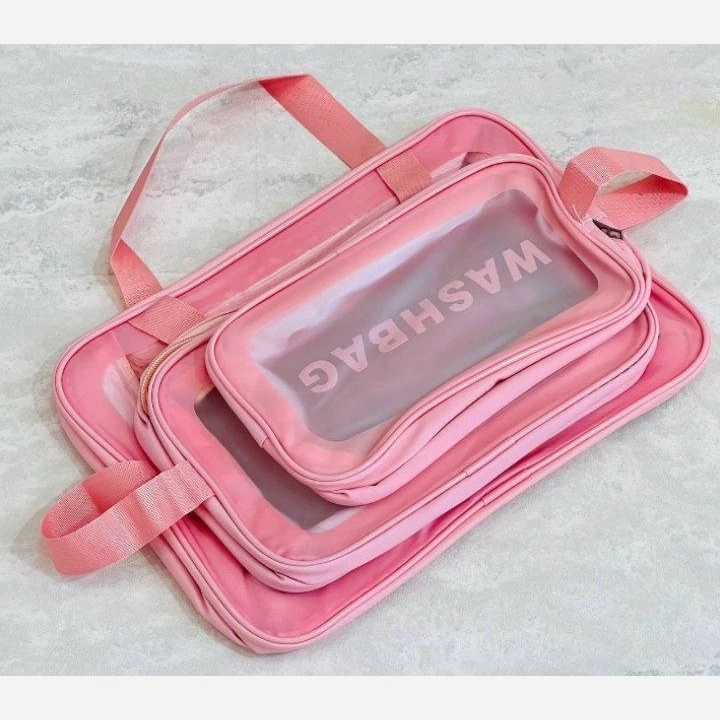 این واشبگ هایی که براتون در 3سایزکابردی با 4رنگ گوگولی شارژ کردیم،قابل شست و شو هستن پس اگر هرچی تو کیفتون کرم و ماسک و لوازم آرایشی ریخت،میشه قشنگ ساییدش بدونی که خراب بشه یا پاره بشه و از لحاظ بهداشتی خیلی هم استریل و تمیز و آنتی بلکتریال هس💃🏽💃🏽