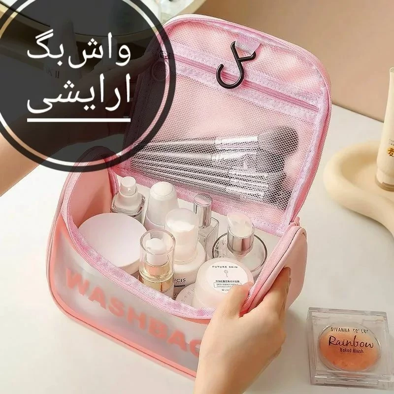 واش بگ سایز بزرگ ضد آب کیف آرایشی پرطرفدار رنگبندی صورتی و مشکی و سفید و آبی