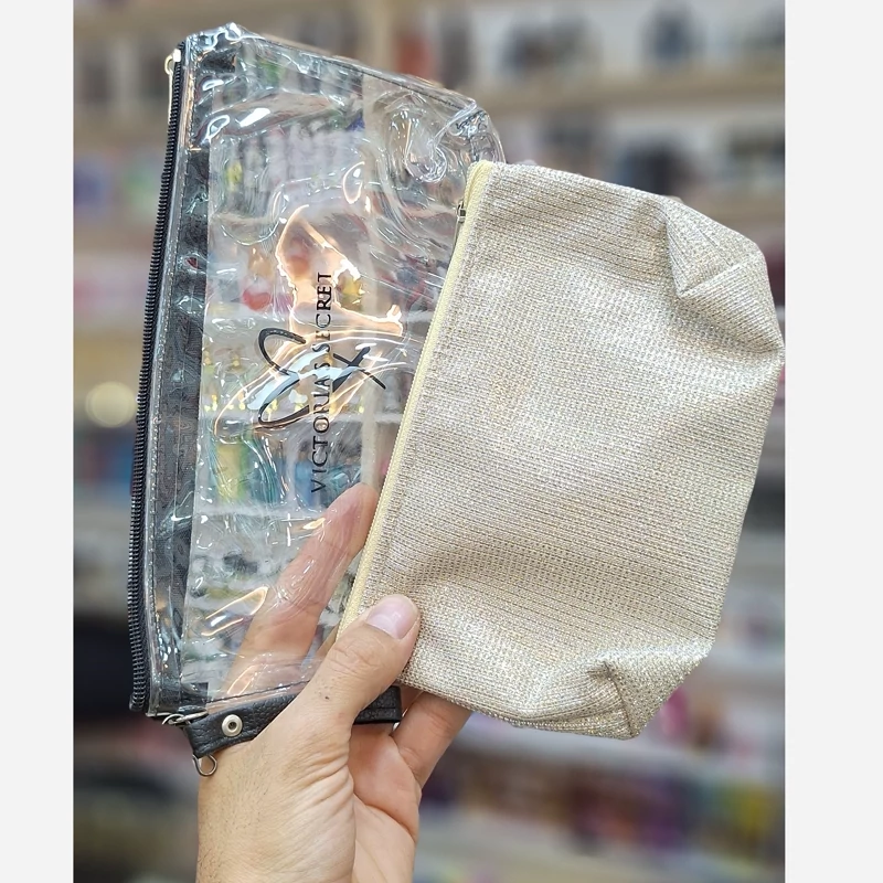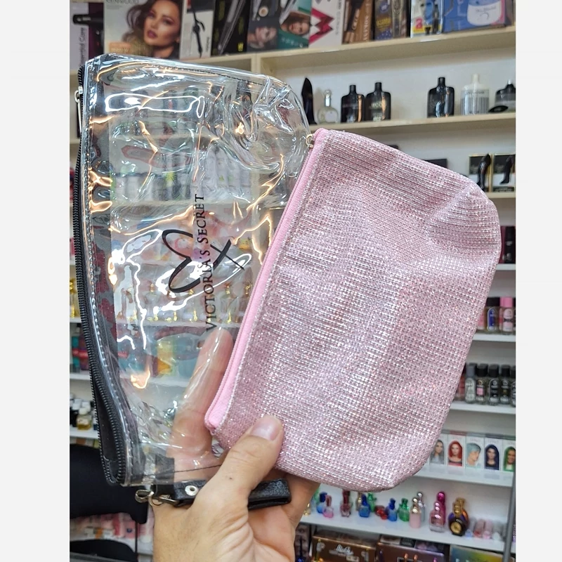 کیف دو تکه مدل ویکتوریا سکرت گلیتری کیف جادار و شیک ترکیب لمه و طلق رنگبندی محدود کیفیت عالی داخلش پارچه کار شده